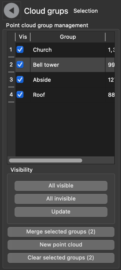 Groups can also be detached from the general point cloud and placed into a new independent cloud.